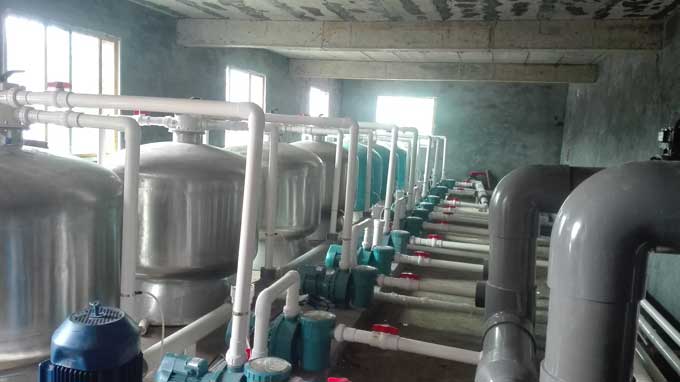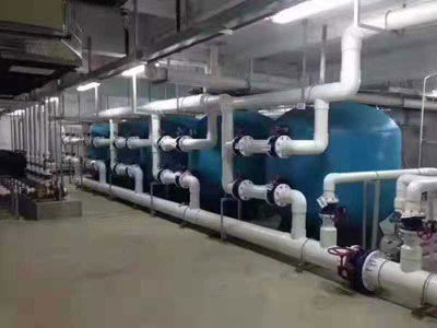 游泳池循環(huán)水凈化處理設(shè)備機(jī)房,一般由均衡水池(或平衡水池)、循環(huán)水泵、過濾器、加藥設(shè)施、換熱器、消毒設(shè)備、化學(xué)藥品和助凝劑、特殊設(shè)施、系統(tǒng)運(yùn)行操作控制設(shè)備等內(nèi)容組成。