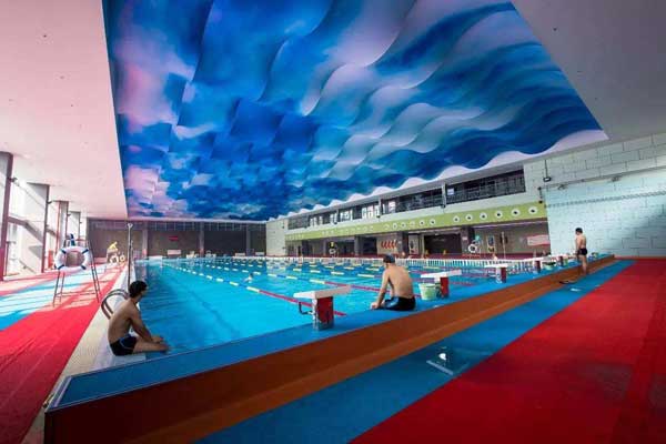 (4)花樣游泳池:由于池子面積較小,規定動作可在跳水池中進行,自選動作可在游泳池中進行。平面尺寸為30m×20m或12m×12m,水深保證≥3m。其他部位≥2.5m。