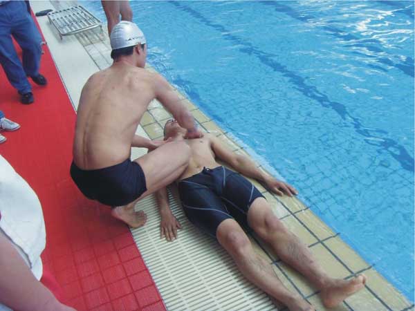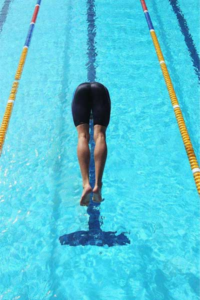 (2)跳水池:池水較深,一般專設一個池子或劃出一個跳水區。標準跳水池平面尺寸為21.5m×15m,水深3.5m―5m,有跳水高臺和跳板。