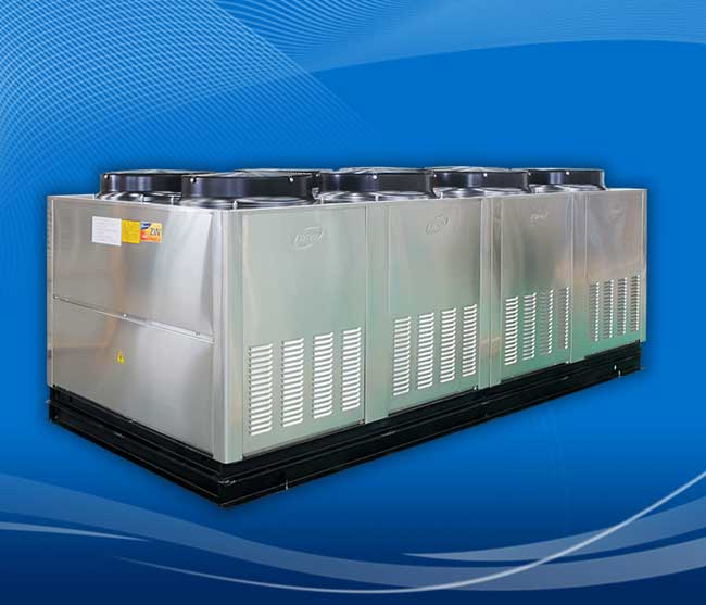 第二步,冷媒吸收的熱能,首先經(jīng)熱交換器加熱池水,實(shí)現(xiàn)池水加熱功能;余熱經(jīng)熱管熱交換器上部及空氣冷凝器,加熱冷卻的空氣,實(shí)現(xiàn)空氣保溫功能。