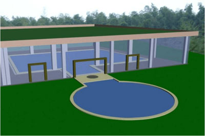 方案三:將成人池與兒童池徹底隔開,采用無機房過濾設備,成人池與兒童池分別安裝過濾設備,互不干擾,根本上解決冬季加熱問題。如圖: