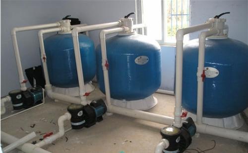 機房內所有水泵(熱水泵除外)均采用進口過濾水泵,在水泵前安裝一毛發過濾器,以攔截一些大顆粒的砂石、樹葉等大雜質,以保護水泵及減輕砂濾器的負荷,雜質只需定期清理即可。